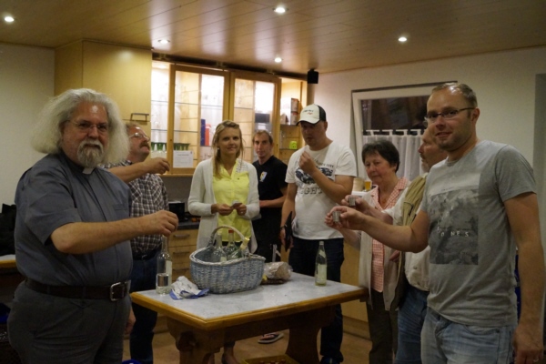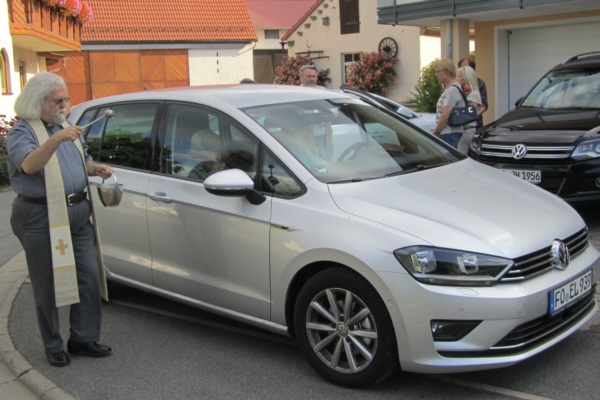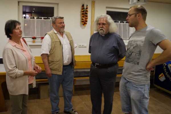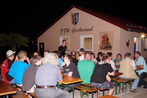 Der monatliche Dämmeschoppen der FFW Geschwand am 23. Juli 2015 stand ganz im Zeichen des Besuches von Pfarrer Peter König. Der Straubinger Stadtpfarrer pflegt eine jahrzehtelange Freundschaft mit einer Geschwander Familie und besucht auch immer wieder mal Geschwand. Bei seinem letzten Besuch am 23. Juli 2015 zeleprierte Pfarrer König einen Gottesdienst in der Geschwander Filialkiche "Mariä Himmelfahrt". Zuvor weihte er noch drei neue Fahrzeuge. Beim anschließenden Dämmerschoppen am Feuerwehrhaus suchten und fanden die Geschwander und Lindner Bürger bei herrlichem Sommerwetter das Gespräch mit Pfarrer König, der vor kurzem sein 30-jähriges Priesterjubiläum feierte.