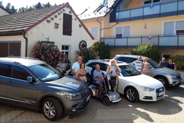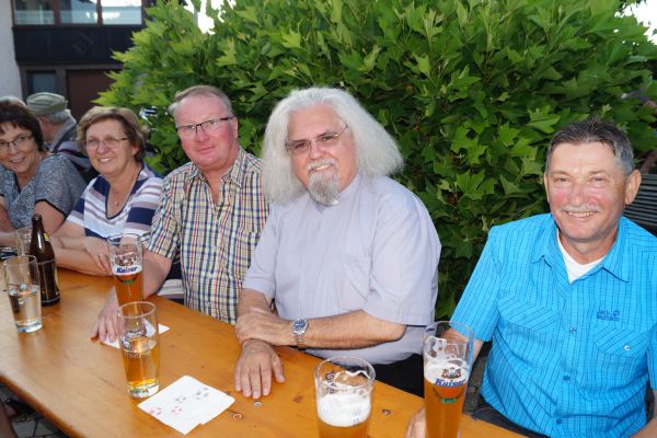 Der monatliche Dämmerschoppen der FFW Geschwand am 19. Juli 2018 stand ganz im Zeichen des Besuches von Pfarrer Peter König. Der ehemalige Straubinger Stadtpfarrer und jetzige Stadtpfarrer von Vilsbiburg pflegt eine jahrzehtelange Freundschaft mit einer Geschwander Familie und besucht auch immer wieder mal Geschwand. Bei seinem letzten Besuch am 19. Juli 2018 segnete Pfarrer König vier neue Fahrzeuge und zelebrierte einen Gottesdienst in der Geschwander Filialkiche "Mariä Himmelfahrt". Beim anschließenden Dämmerschoppen am Feuerwehrhaus suchten und fanden die Geschwander und Lindner Bürger bei Gegrilltem und frischem Bier das Gespräch mit Pfarrer König, der am 08. September 2016 von Straubing in die Pfarrei "Mariä Himmelfahrt" nach Vilsbiburg wechselte.