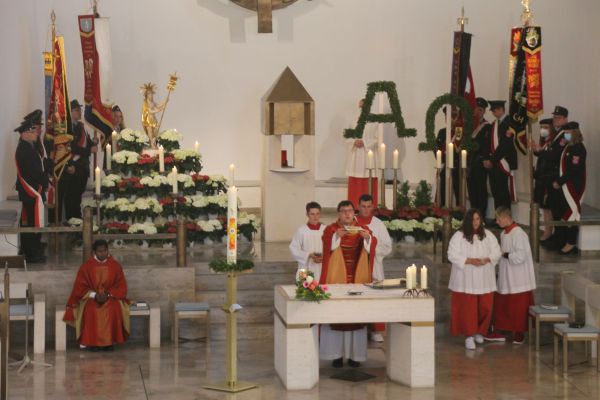 | von links: Kaplan Daniel Bara, Pfarrer Florian Stark, Andreas Eckert (40 Jahre), Edmund Wiegärtner (40 Jahre), Günther Steinhäußer (50 Jahre), Thorsten Küchler (Kommandant), Josef Haas (50 Jahre), Hans Brendel (50 Jahre), Martin Zellmann (1. Vorsitzender), Adolf Zellmann (40 Jahre) |