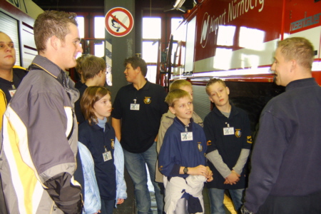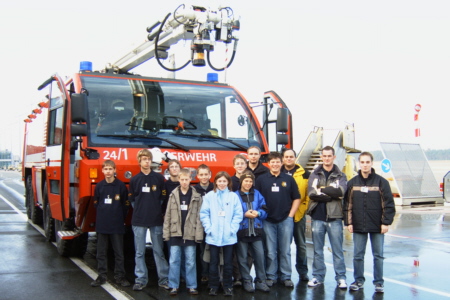 Am 26. November 2006 besuchten die Jugendfeuerwehren aus Obertrubach, Wolfsberg und Geschwand die Flughafenfeuerwehr auf dem Airport-Nürnberg. Nachdem sie die sehr gründlichen Sicherheitschecks erfolgreich absolviert hatten, wurden die Jugendlichen vom Schichtleiter Übel im Schulungsraum der Flughafenfeuerwehr begrüßt. Nach einer kurzen Einweisung über die Verhaltensregeln auf dem Flughafengelände wurde den Jungfeuerwehrleuten ein interessanter Film über die Arbeit der Flughafenfeuerwehr gezeigt. Im Anschluss erklärte Schichtleiter Übel anhand einer Präsentation die Ausstattung der Flughafenfeuerwehr. Bei der anschließenden Besichtigung der Feuerwehrfahrzeuge waren die angehenden Feuerwehrleute vollends begeistert. Ihnen wurden durch die Mitarbeiter der Flughafenfeuerwehr Rittner, Dötzer und Mößner jedes Fahrzeug erklärt und ihre Einsatzgebiete erläutert. Das Highlight bei der Besichtigung war, dass jedes Fahrzeug auch betreten und von innen besichtig werden konnte. Die Freiwillige Feuerwehr Geschwand bedankt sich bei den Kameraden der Flughafenfeuerwehr vom Airport-Nürnberg für die freundliche