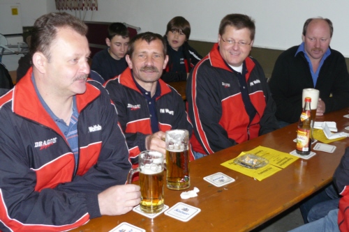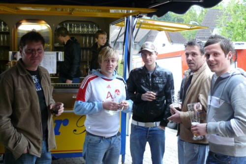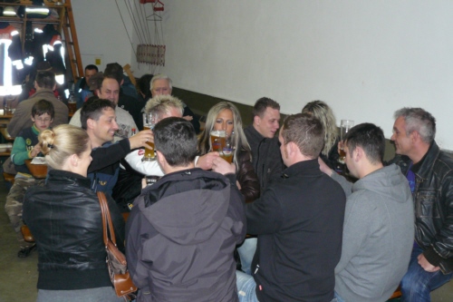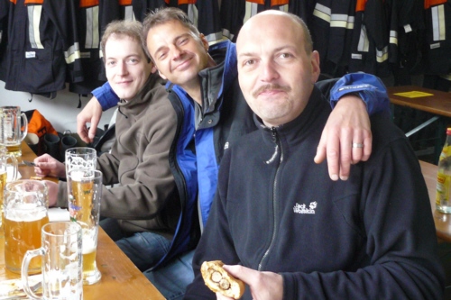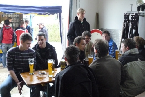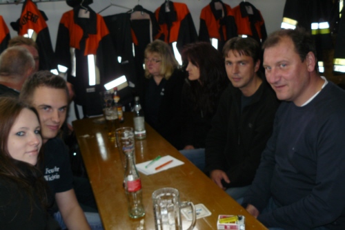 | Am 13. Mai 2010 hielt die FFW Geschwand bei anfänglichem trockenen, ab 16 Uhr regnerischem Wetter ihre traditionelle Grillparty am Feuerwehrhaus ab. Viele benachbarte und befreundete Wehren ließen sich nicht von den schlechten Wetterbedingungen abhalten und ließen es sich beim Frühschoppen bei Weißwürsten mit Brezen und Weißbier gutgehen. Zu Mittag gab es die weit über die Geschwander Grenzen hinaus bekannten gegrillten Schweinshaxen. Am Nachmittag gab es Kaffee und Kuchen, (der Erlös kam wie jedes Jahr der Behindertengruppe zu Gute). Danach wurde bis in die späten Abendstunden gefeiert. |