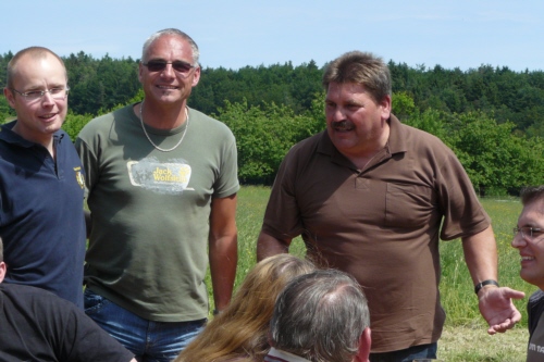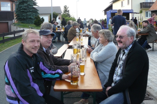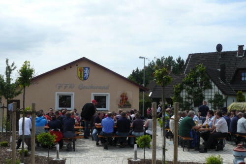 | Am 02. Juni 2011 hielt die FFW Geschwand am, mit neuer Beschriftung versehenen, Feuerwehrhaus ihre diesjährige Grillparty ab. Bei immer schöner werdenen Wetter mit frühsommerlichen Temparaturen war der Frühschoppen bei Weißwürsten mit Brezen und Weißbier schon bestens besucht. Viele benachbarte und befreundete Wehren waren sowohl zum Frühschoppen als auch am Nachmittag zu Gast. Sogar eine Abordnung aus Hessen durfte Kommandant Thomas Haas begrüßen. Zum Mittagessen servierten die Grillmeister Manfred Koch und Adolf Zellmann die weit über die Geschwander Grenzen hinaus bekannten gegrillten Schweinshaxen. Am Nachmittag gab es Kaffee und Kuchen, (der Erlös kam wie jedes Jahr der Behindertengruppe zu Gute). Danach wurde bis in die frühen Morgenstunden gefeiert. |