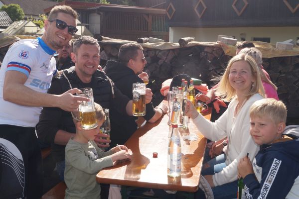 | Die weit über die Grenzen von Geschwand hinaus bekannten gegrillten Schweinshaxen waren auch bei der Grillparty 2023 wieder ein Highlight. Zum Frühschoppen wurden Weißwürste serviert |