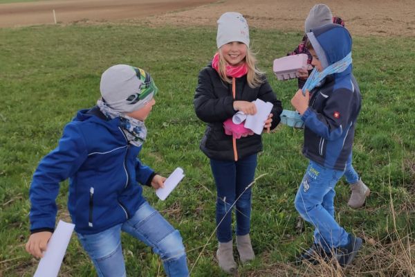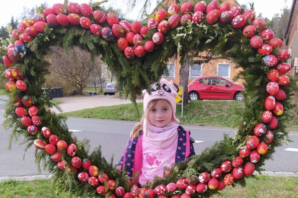 nach erfolgreicher Osternestsuche am Geschwander Osterbrunnen