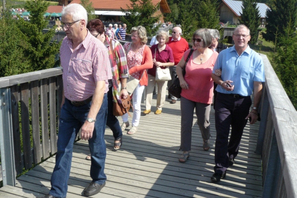 des FSV & OGV Geschwand bei herrlichem Spätsommerwetter auf den Weg nach Straubing. Angekommen in Staubing besuchten die Ausflügler zuerst den von Pfarrer Peter König, der eine 40-jährige Freundschaft mit Josef Haas pflegt, zelebrieten Gottesdienst in der Stadtkiche Straubing. Im Anschluss wurde im Garten des Pfarrzentrums das traditionelle Feldfrühstück serviert. Bei der Führung durch die Altstadt von Straubing stieß Oberbürgermeister Markus Pannermayr zu den Ausflüglern. Weitere Attraktionen der Tagesfahrt waren der Besuch im Waldwipfelweg in Sankt Engelmar und ein Rundgang auf dem Bogenberg.