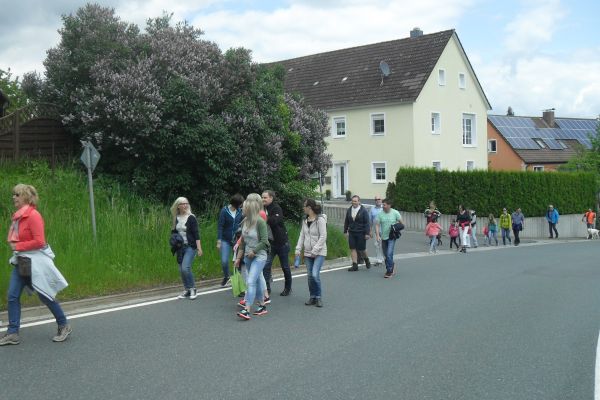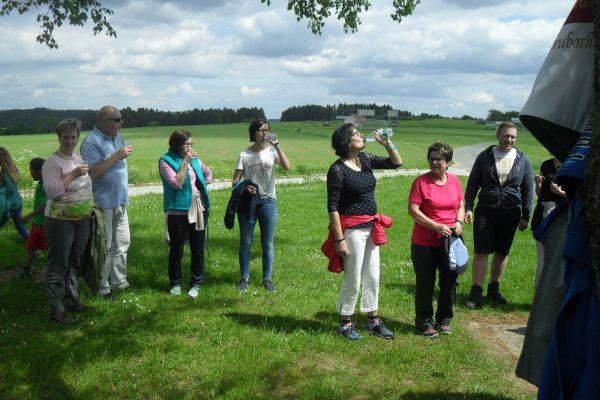 Geschwand. Die Wanderung führte am "Rutschstein" vorbei, durchs "Öbere Holz" den Rundwanderweg Richtung Affalterthal, durchs "Flins" Richtung Bieberbach, dann durch Rothenhof, weiter über Linden Richtung Krachershöhe. Am alten Sportplatz in Geschwand durften sich die Wanderfreunde noch einmal stärken bevor sie sich auf die restlichen Meter bis direkt zur Grillparty der FFW Geschwand machten,