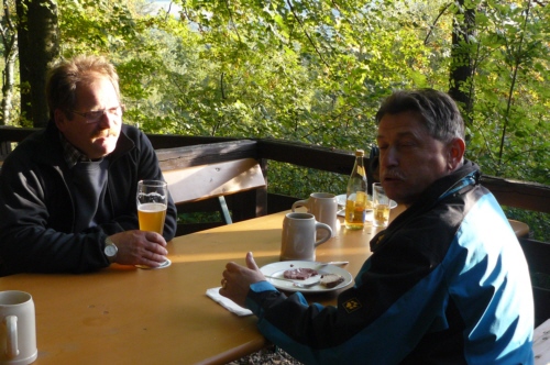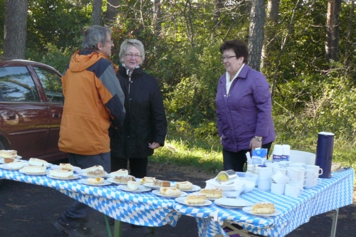 | Auf Einladung von Georg Wiesheier aus Hirschaid, dessen Wurzeln in Geschwand liegen, und dessen Frau Hildegard führte die traditionelle Herbstwanderung des FSV Geschwand die 36 Wanderfreunde am 03. Oktober 2013 auf die "Friesener Warte". Bei kühlem aber sonnigem und trockenem Herbstwetter konnten die FSV-ler wunderbare Aussichten auf Bamberg und der Umgebung genießen. Gleich bei der Ankunft mit dem Bus wurden die Wanderfreunde mit einem Buffet aus Kaffee und Kuchen und einer kleinen Brotzeit empfangen und auch während der Wanderung gab es "Verpflegungsstationen". Die Friesener Warte ist ein 561m hoher Berg der