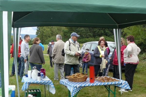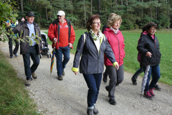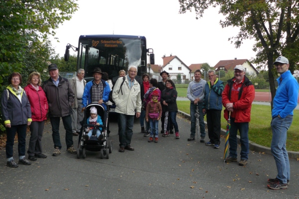 Zum zweiten Mal lud Georg Wiesheier aus Hirschaid und seine Familienanghörigen die FSV-Wanderfreunde zu sich ins Regnitztal ein. Bei anfänglichem Nieselwetter, jedoch immer besser werdenden Wetter führte Georg Wiesheier zusammen mit Wanderwart Werner Schmidt die 19 Wanderfreunde am 02. Oktober 2016  bei der traditionelle Herbstwanderung des FSV Geschwand die Wandergruppe durch seine Heimat. Nach Ankunft mit dem Bus in Sassanfahrt war am Schulgelände Start der Wanderung. Vorbei an der Siedlung Juliushof führte der Wanderweg dann durch die Sassanfahrter Flur zur Seußlinger Höhe. Hier wurde eine von der Familie Wiesheier organisierte und spendierte kleine Kaffeepause eingelegt. Auch hatte man auf dem Weg und von hier einen schönen Ausblick ins Regnitztal. Im Osten zog sich der gesamte Höhenzug von den Mainbergen, über die Friesener Warte bis hin zur Fränkischen Schweiz entlang. (Also von Bamberg bis zum Walberla.) Über den Rothensander Berg führte die Strecke dann wieder  ins Tal hinab. Durch den Wald bei Köttmannsdorf (hier wartete noch eine kleine Tankstelle auf die Wanderer), gelangte man dann zum Vereinsheim des Trachtenvereins "Ebrachtaler Köttmannsdorf". Hier ließ man dann die Wanderung bei einer Brotzeit ausklingen.