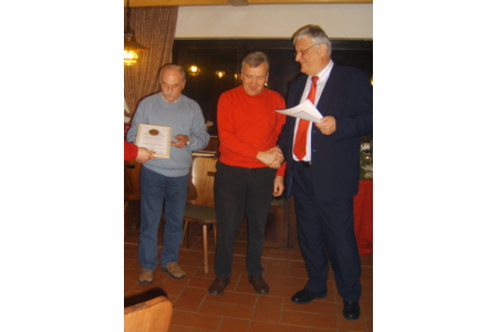 | Am 05. Januar 2007 hielt der Gesangverein Gemütlichkeit Geschwand seine Jahreshauptversammlung für das Jahr 2006 ab. 1 Vorsitzender Willi Müller begrüßte 33 Mitglieder. Dirigent Ludwig Ebenhack verwies auf 44 Singstunden und 36 Auftritte im abgelaufenem Jahr, soviel wie noch nie in der Vereinsgeschichte. Willi Müller ehrte für 25 Jahre Singen im Chor Peter Hofmann, für 40 Jahre Singen im Chor Rudolf Arnold, für 25 Jahre Mitgliedschaft im Gesangverein Robert Rupp und für 40 Jahre Mitgliedschaft im Gesangverein Ulrich Wiesheier. |