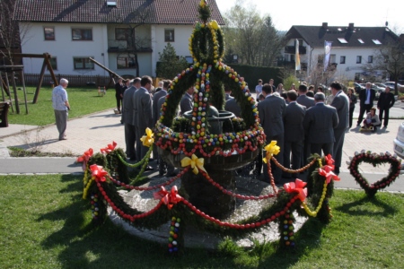 an den Osterbrunnen in Geschwand und Bieberbach am 12. April 2009