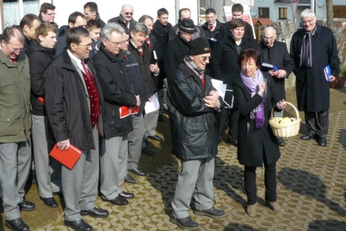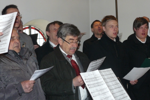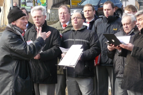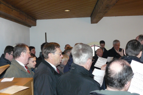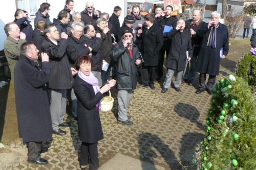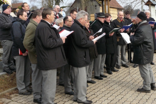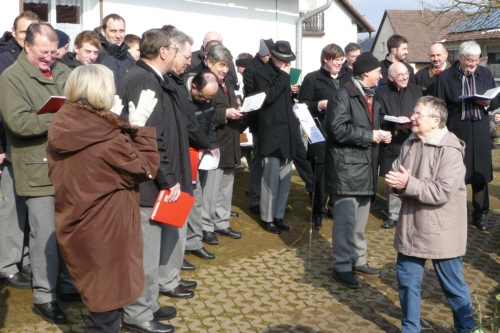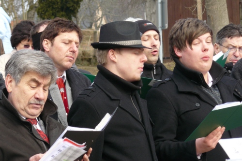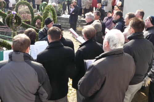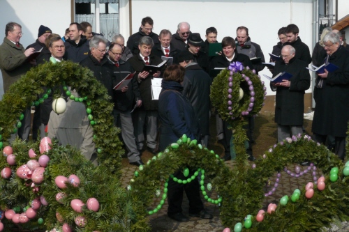 Am Ostersonntag umrahmte der Gesangverein "Gemütlichkeit" Geschwand den Ostergottesdienst mit drei Liedern. Mit den traditionellen kleinen Osterkonzerten an den Osterbrunnen in Geschwand und Bieberbach versuchte der Chor trotz der sehr kühlen Temperaturen um den Gefrierpunkt mit überaus stimmungsvollen Aufführungen den Frühling herbeizusingen.