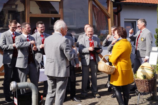 Am Ostersonntag, den 05. April 2026 umrahmte der Gesangverein "Gemütlichkeit" Geschwand den von Markus Habermann zelebrierten Wortgottesdienst mit vier Liedern. Im Anschluss lud der Gesangverein "Gemütlichkeit" Geschwand und die "Spätlese" der Jugendblaskapelle Obertrubach die Gäste an die Osterbrunnen in Geschwand und in Bieberbach ein, einem kleinen Frühlingskonzert zu lauschen.