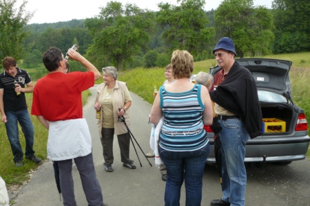 Am 04. Juli 2009 führte die 2. Wanderung des Gesangvereins Gemütlichkeit Geschwand die Sänger und die Freunde des Chors zuerst zum Signalstein, dann über die Hohberghöhle zur Burg Wolfsberg. Dort wurden die Wanderfreunde von Wilfried Kirsch in Empfang genommen und über die mehr als 900-jährige Geschichte der Burg geschichtlich auf den neuesten Stand gebracht. Die vorletzte Station der Wanderung war das Wasserwerk der Wassergruppe Betzenstein in Wolfsberg. Karlheinz Saalbach erläuterte den Wanderern Geschichtliches und Technisches über das Wasserwerk, das zu 40% den Wasserbedarf der Betzensteingruppe deckt. Die letzte Station war dann die Kirchweih in Wolfsberg. Im Festzelt am Sportplatz wurde bei schmackhaften Speisen und süffigen Bier bis in die späten Abendstunden mit den Freunden aus Wolfsberg gefeiert.