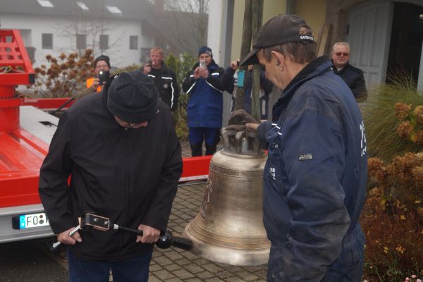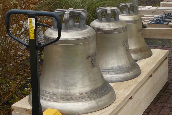 der drei neuen Glocken auf den Weg in den Glockenturm