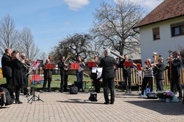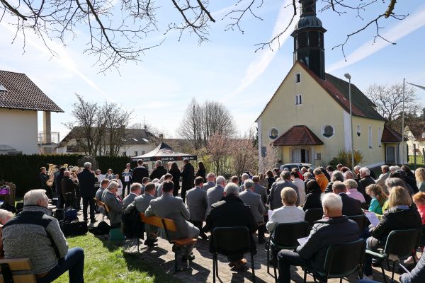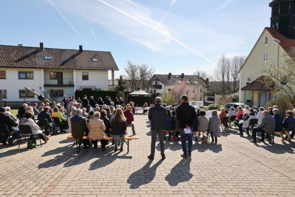 Das 130-jährige Gründungsjubiläum des Posaunenchors Affalterthal war der Anlass für einen ökumenischen Gottesdienst am Ostermontag in Geschwand. Auf Initiative der evangelischen Kirchengemeinde Affalterthal-Bieberbach und nach Kontaktaufnahme mit Erwin Arnold von der Kirchenverwaltung der Filialkirche Maria Himmelfahrt Geschwand wurde ein ökumenischer Gottesdienst der beiden Kirchengemeinden geplant. Am Ostermontag, den 18. April 2022 zelebrierten Dekan Reiner Redlingshöfer aus Gräfenberg und die Gemeindereferentin Maria Sponsel aus Ebermannstadt einen ökumenischen Gottesdienst auf dem Parkplatz gegenüber der Kirche in Geschwand. Ca. 200 Gläubige wohnten dem vom Posaunenchor Affalterthal musikalisch umrahmten ökumenischen Gottesdienst bei. Der Gesangverein "Gemütlichkeit" Geschwand beteiligte sich mit zwei Liedern an der Gestaltung des Gottesdienstes. Die Kollekte kommt der Ukrainehilfe zu Gute.