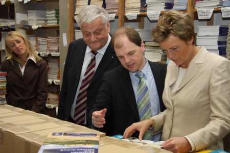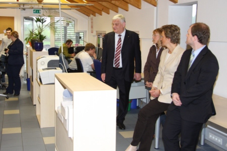 | Eine aufmerksame Zuhörerin fanden Willi Müller, Firmenchef von Schmetterling in Geschwand im Oberland der Fränkischen Schweiz, und seine Mitarbeiter in der hiesigen CSU-Kandidatin für die Europawahl, Monika Hohlmeier. Elmar Singer führte Monika Hohlmeier durch die Firma. Ihr Anliegen war es, ein junges und erfolgreiches mittelständisches Unternehmen im Landkreis Forchheim auf einer Eurobustour kennen zu lernen, das die JU Oberfranken quer durch den Regierungsbezirk organisiert hatte. In Begleitung des JU Kreisvorsitzenden Michael Hofmann und Maria Sponsel vom JU Kreisvorstand sowie zahlreicher Vertreter der örtlichen wie der CSU aus ganz Oberfranken lernten die Besucher eine Firma auf höchstem technischen Niveau kennen.Der kurzen Firmenpräsentation folgten eine zwanglose Aussprache sowie eine kleine Firmenführung. Müller ging nochmals auf seine Anfänge zurück, wo er zunächst als gelernter Landwirt 1967 noch große andere Pläne in seiner damaligen Branche verfolgte, zweifelte die Machbarkeit bei näherem Hinsehen aber an, besann sich neu und besitzt heute ein hoch innovatives Unternehmen der Reisebranche mit über 400 wertvollen Arbeitsplätzen in einer strukturschwachen aber landschaftlich reizvollen Gegend, darunter Topspezialisten aus ganz Deutschland. „Vielseitig wie die Welt“ ist seit 1980 der Slogan und in der Tat ist man auch in diversen Sparten die Nummer eins europaweit. Schmetterling arbeitet mit 3500 Reisebüros weltweit zusammen und verfügt über internationale Partnerschaften von Südafrika bis Kanada und von Indien bis Australien. Größter Wert wird auf die Ausbildung im eigenen Haus mit einer Quote von 10 bis 15 Prozent in den verschiedensten Bereichen gelegt. Außerdem belegt Schmetterling ständig vier Studienplätze in Ravensburg. Abwerbungen dieser guten Kräfte durch den Wettbewerb seien dabei immer ein Thema. Dabei, so Müller, sei Wohlfühlen mehr als nur ein Gehalt. Dazu gehört auch, das die Mitarbeiter in der Region heimisch werden. Er betonte einmal mehr den Charakter seines heimatverbundenen Familienunternehmens, das auch von seiner Frau Cäcilie, den Töchtern Anja und Daniela sowie den Schwiegersöhnen mit Herzblut geführt wird.Genauer hat Monika Hohlmeier sicher auch hingehört, als Schwiegersohn Elmar Singer die oft sinnlosen Vorgaben der EU anprangerte. Wo Gesetzte auch zu kurzatmig erlassen würden. Omnibusse vor 2004 beispielsweise hatten Euronorm 3 und dürfen nach den neuen Vorgaben nicht mehr in große Innenstädte wie München fahren. Soll man solche Fahrzeuge, die vielleicht noch 50 Prozent und mehr Wert besitzen, dann wegwerfen, wer kann sich das leisten?Singer geißelte auch die Abgasnormen, wo höherer Verbrauch die Vorgaben zu Makulatur werden lassen. Monika Hohlmeier meinte, die Deutschen hätten bei der Auslegung von EU-Rahmenbedingungen leider einen besonderen Eifer. Mitarbeiterin Denise Jurrat mahnte das EU-Reiserecht an, das in den einzelnen Ländern doch sehr unterschiedlich gehandhabt werde Willi Müller, der gleichzeitig Bürgermeister der Gemeinde Obertrubach ist, würdigte in diesem Zusammenhang auch die örtlichen Rahmenbedingungen, geschaffen durch eine seit 1950 mit Augenmaß und Solidität betriebenen Gemeindepolitik von CSU-Bürgermeistern. Weitab von den infrastrukturstärkeren Gemeinden in Stadtnähe habe man hier dennoch alle zeitgemäßen kommunalen Einrichtungen. Und das bei einer Verschuldung weit unter dem Landesdurchschnitt. |