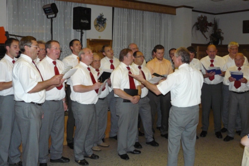 eigens zum 50. Geburtstag von Irmgard Eichler umgetextete Version des Volksliedes "Ein Schäfermädchen weidete" als Ständchen von der Singgruppe des FSV