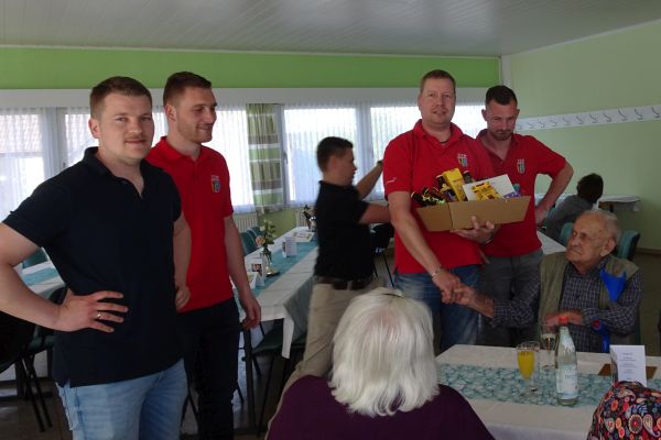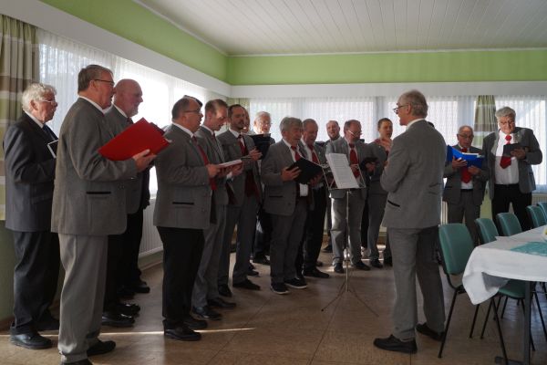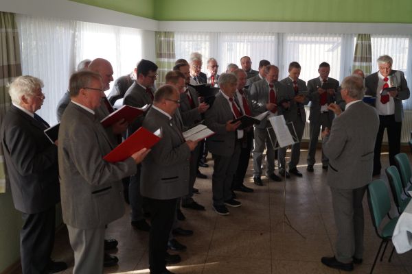 | Der Gesangverein "Gemütlichkeit" Geschwand gatulierte seinem Ehrenmitglied mit einem Ständchen |