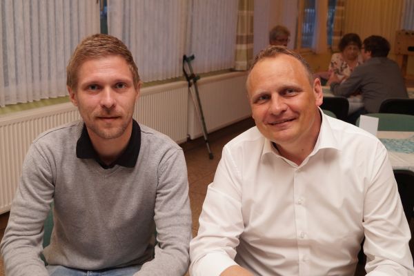 | Zweiter Bürgermeister Bernd Reichel (li.) und der stellvertretende Landrat Otto Siebenhaar gratulierten im Namen der Gemeinde und des Landkreises |